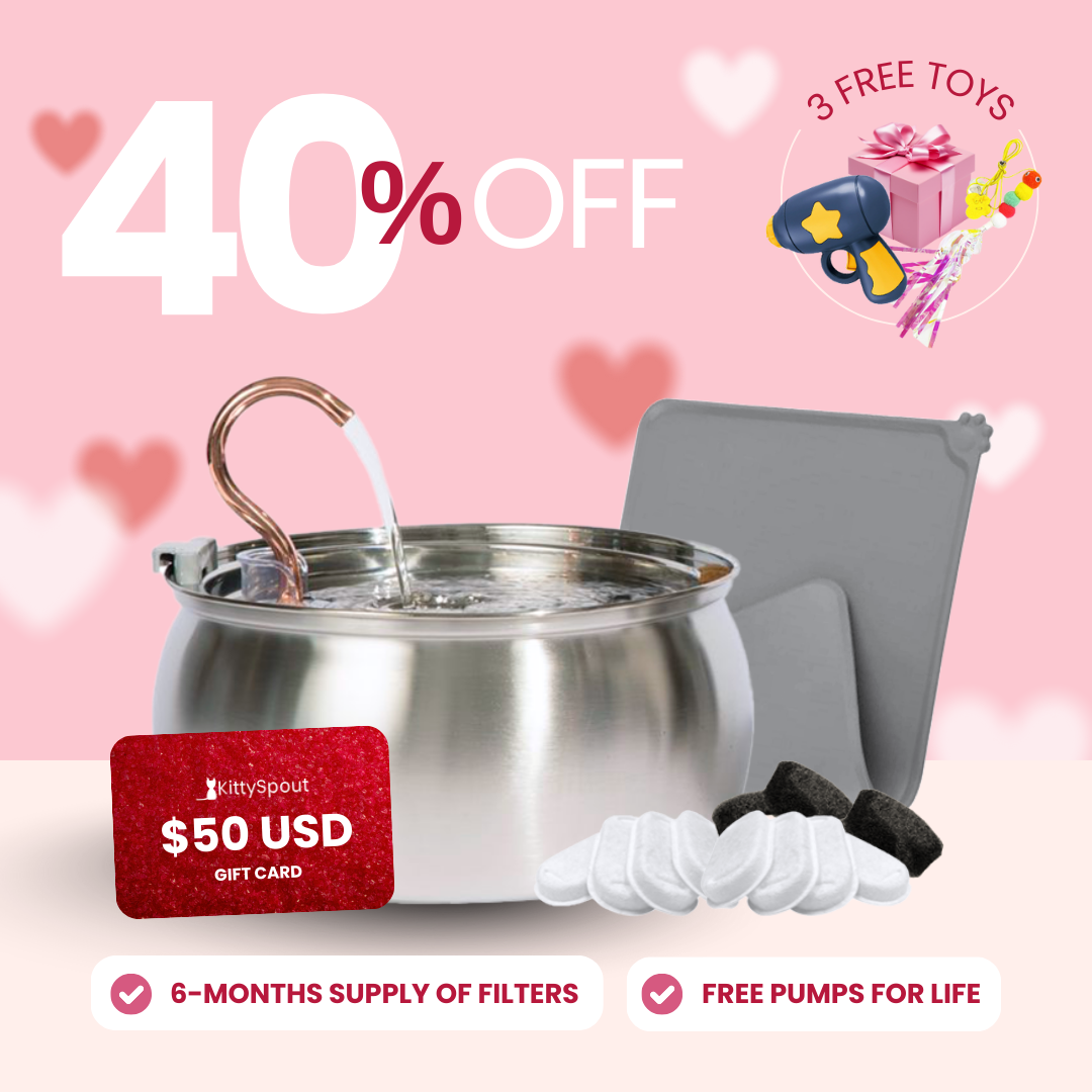 The KittySpout improves your cat's health & happiness by providing them with fresh, filtered water all day long. Loved by thousands of busy cat parents for its spout-like design and easy use.
