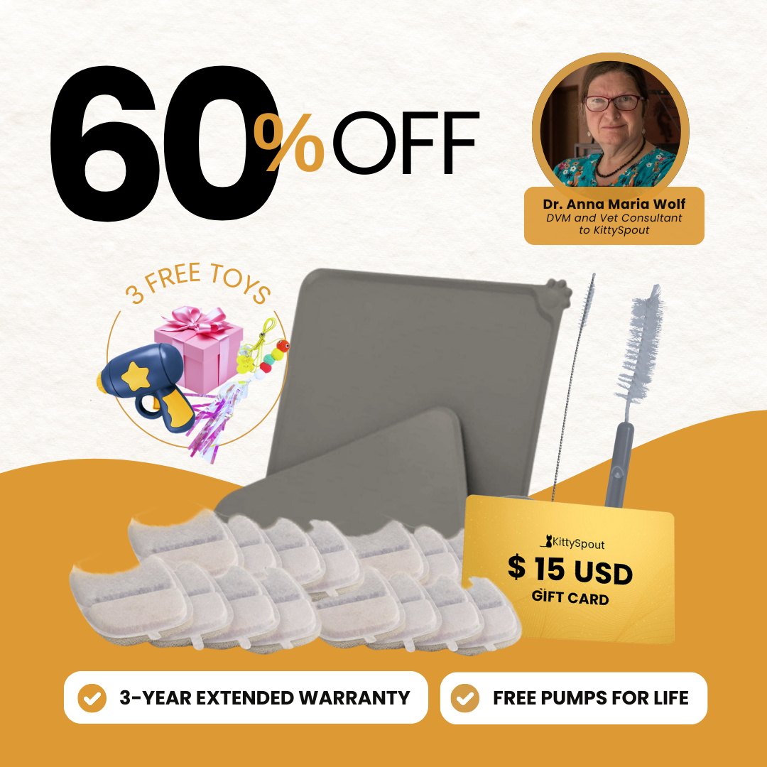 Cats are picky about their water. They might not drink if the water tastes or smells strange. To keep the water in the fountain fresh and clean, change the filter every 2 weeks.