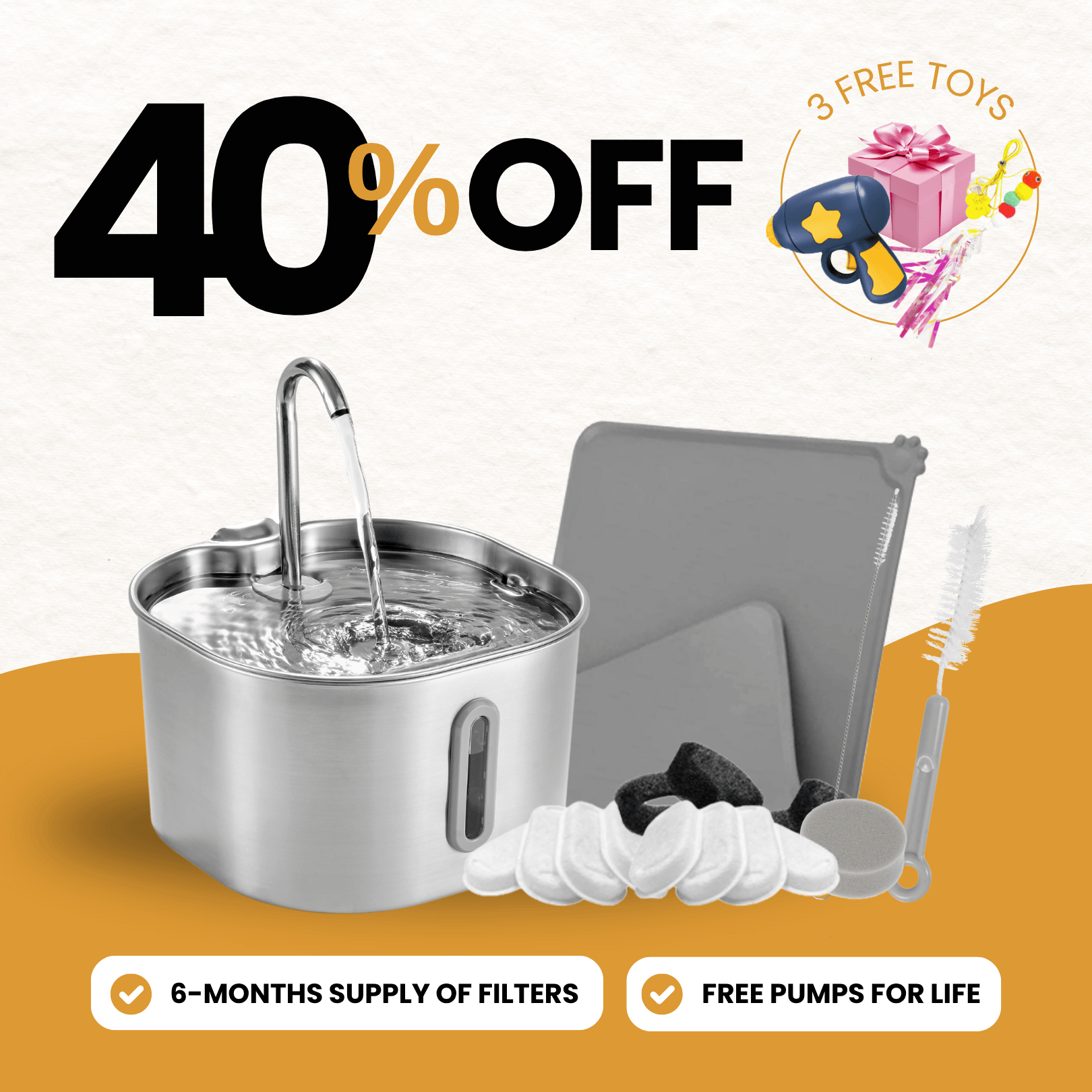 The Triple Action Carbon filter removes magnesium, calcium, hair, dirt and other impurities from your cats water. These minerals can accumulate in your pet’s lower urinary tract and lead to urinary tract infection.