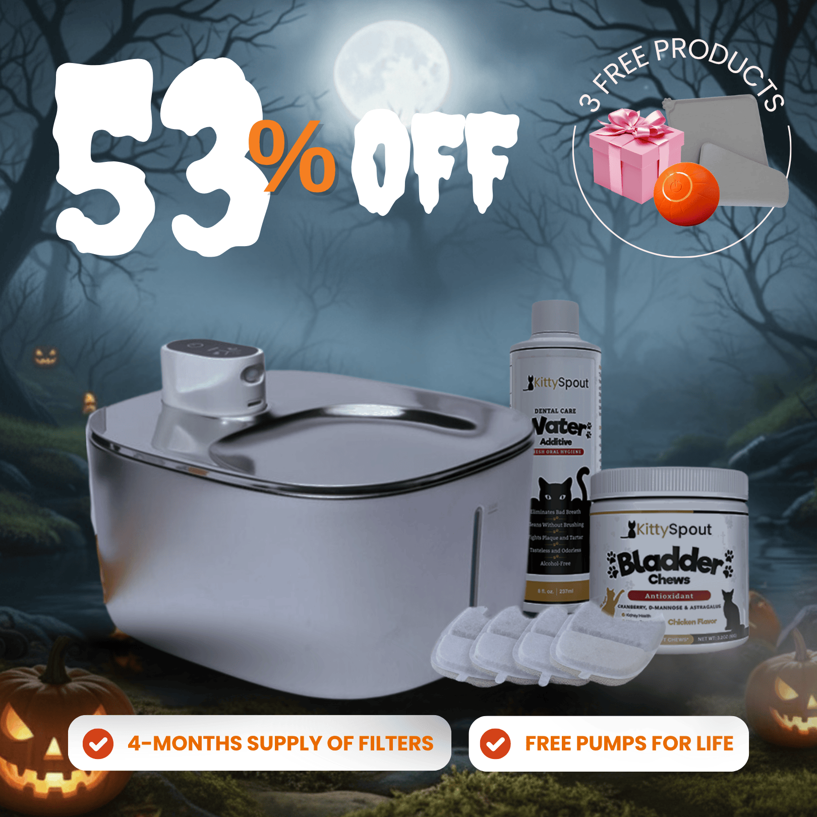 Full KittySpout Fountain - 108 oz. (3.2L): 3 tsp. Sensitive cats: 1.5 tsp.