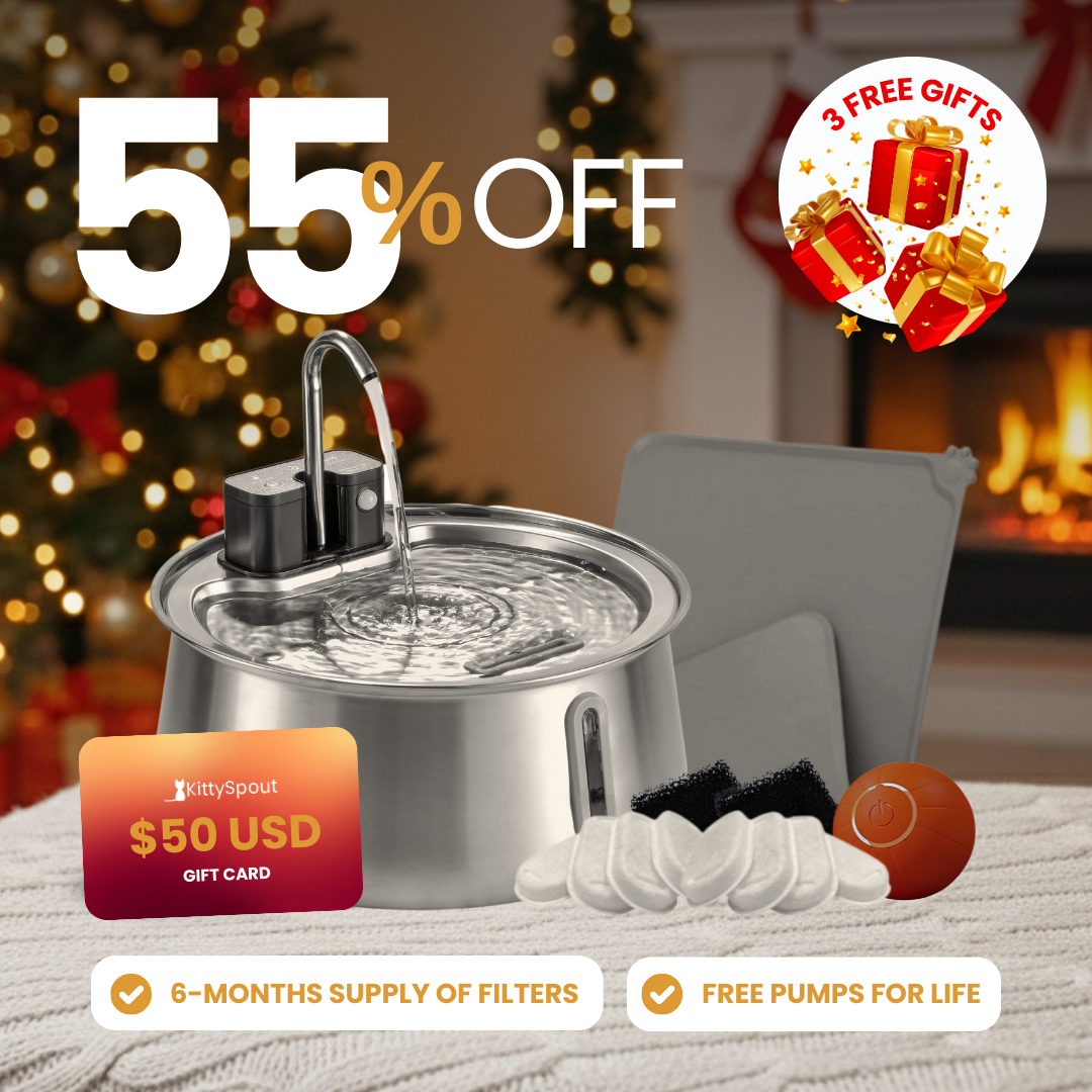 The Triple Action Carbon filter removes magnesium, calcium, hair, dirt and other impurities from your cats water. These minerals can accumulate in your pet’s lower urinary tract and lead to urinary tract infection.