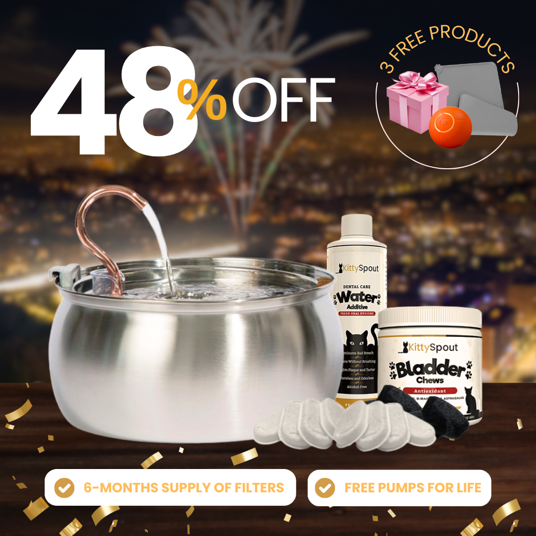The KittySpout improves your cat's health & happiness by providing them with fresh, filtered water all day long. Loved by thousands of busy cat parents for it's spout-like design and easy use.